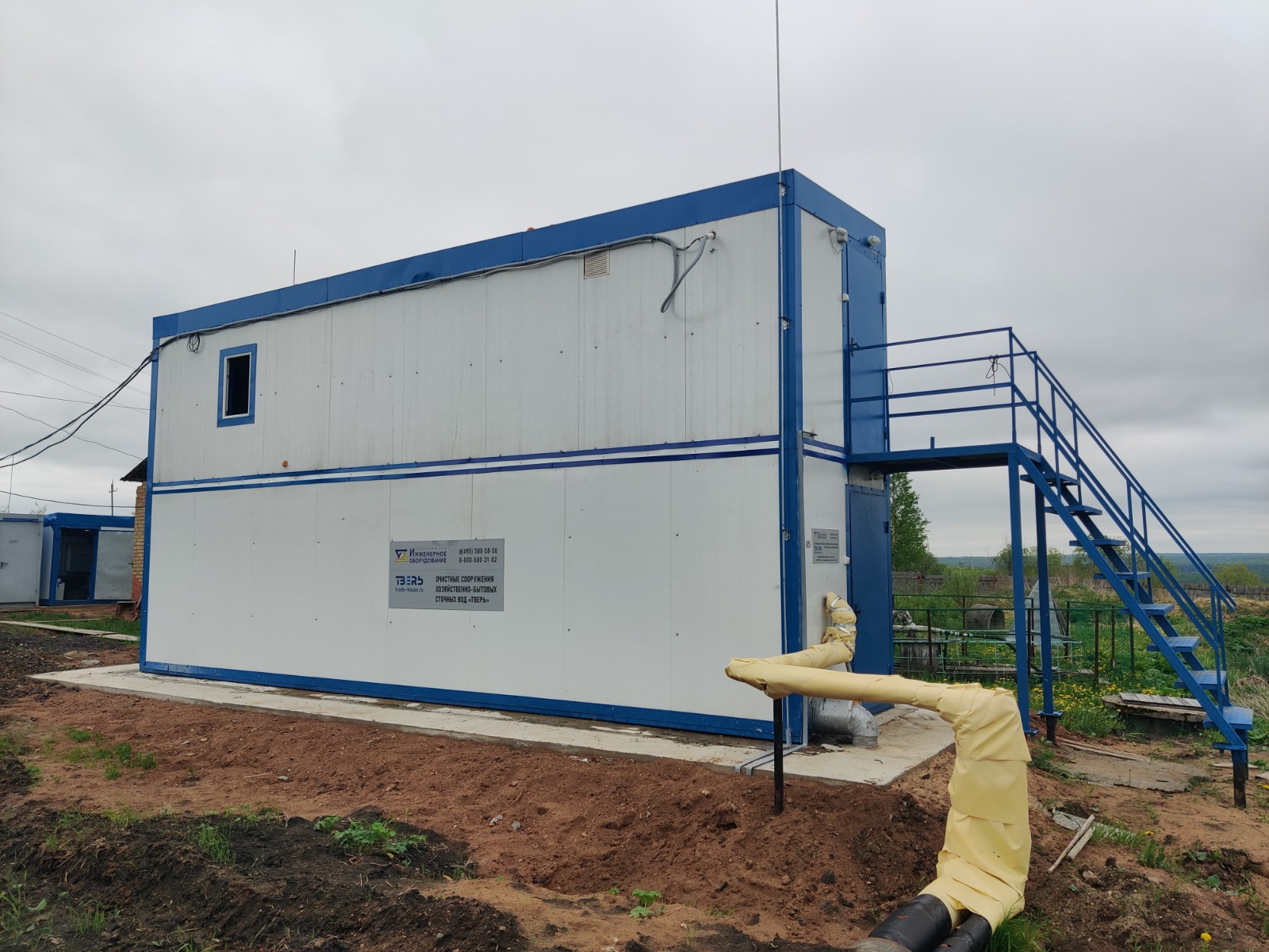 Станция очистки бытовых сточных вод "ТВЕРЬ-15БМ" представляет из себя утепленное здание из блок-модулей, установленных на фундаменте, со всем технологическим оборудованием внутри.